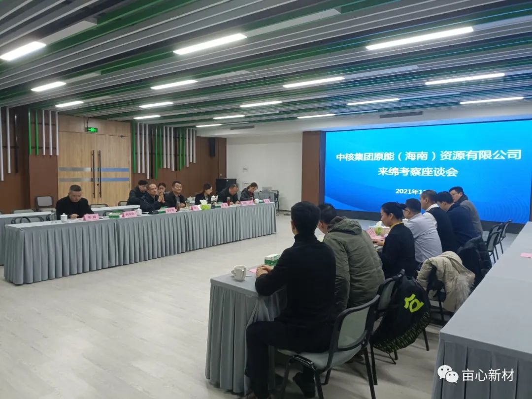 2021年12月22日至23日,中核集團(tuán)原能(海南)資源有限公司副總經(jīng)理付夢(mèng)來帶隊(duì)來綿考察調(diào)研畝心新材。